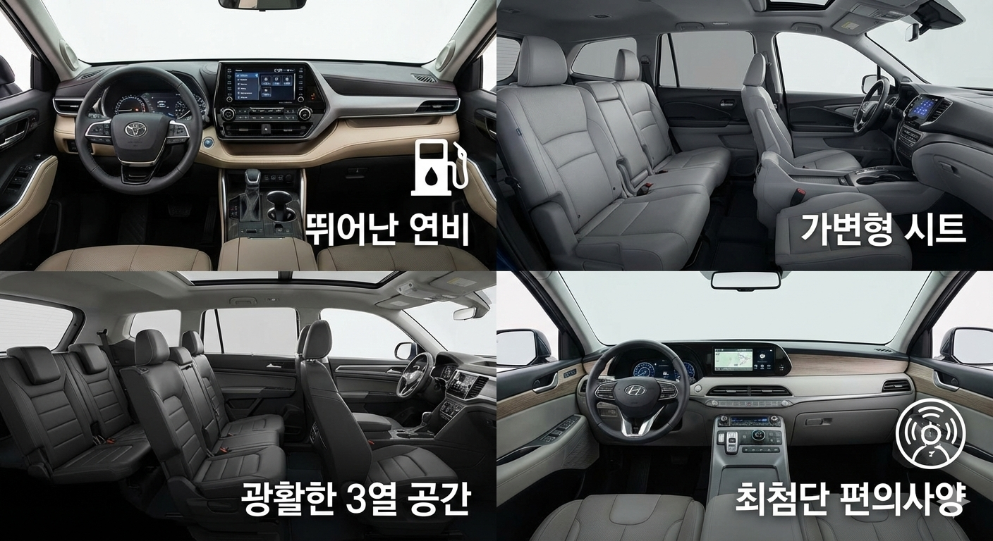 2026년 최고의 가족용 SUV 선택 가이드: 하이랜더, 파일럿, 아틀라스, 팰리세이드 전격 비교