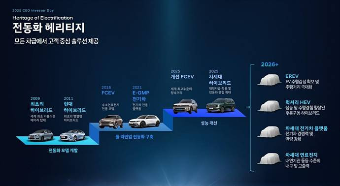 현대자동차는 2026년 북미와 한국 시장을 겨냥해 제네시스 GV70, GV80급에 EREV 라인업을 추가합니다. 이는 북미의 광활한 대륙 횡단 환경에서 BEV가 가진 한계를 극복하고, 프리미엄 브랜드로서 정숙성을 유지하려는 고도의 전략입니다. 현대차의 EREV는 한번 주유와 충전으로 합산 주행거리 900~1,000km를 목표로 하고 있습니다.