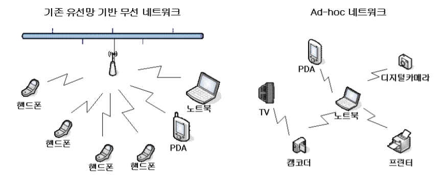애드혹 네트워크는 노드들에 의해 자율적으로 구성되는 기반 구조가 없는 네트워크를 의미합니다. 다시 말해 네트워크 구성 및 유지를 위한 기지국이나 액세스 포인트가 없어도 사용이 가능하다는 의미입니다. 애드혹 노드들은 무선 인터페이스를 사용하여 서로 통신이 가능하며 멀티홈 라우팅 기능을 위해 무선 인터페이스가 가지는 거리상의 제약을 극복하며 노드들의 이동이 자유롭기 때문에 네트워크 토폴로지가 동적으로 변화되는 특징 있습니다. 에드혹 네트워크는 완전 독립형이 될 수도 있고, 인터넷 게이트웨이를 거칠 경우 인터넷과 같은 기반 네트워크와 연동이 될 수도 있습니다. 이러한 특징 덕분에 긴급 구조나 전쟁터와 같은 특수한 상황처럼 긴급하고 보안이 요구되는 경우 주로 사용되고 있지요.
