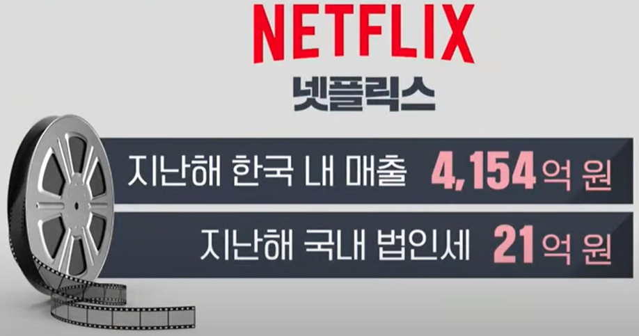 넷플릭스는 지난해 국내에서 4000억 원이 넘는 매출을 올렸습니다. 그런데 본사에 보낸 수수료가 많다 보니 국내에 낸 법인세가 겨우 21억 원에 불과했습니다.