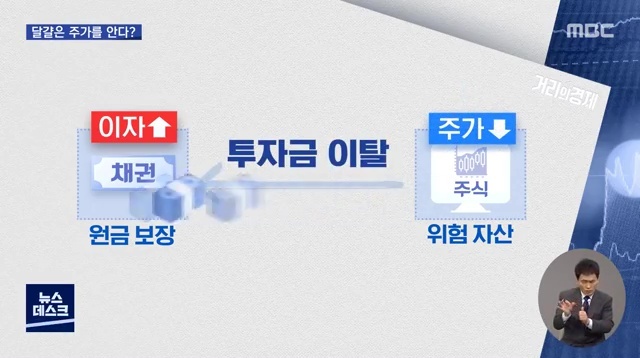 원금을 보장하는 채권이 더 많은 이자를 지급하기 때문에 위험자산인 주식보다 채권으로 돈이 몰리게 되는 것입니다. 따라서 주가와 채권금리는 N 극과 S 극이라고 표현하기도 합니다. 이것이 주식투자를 할 때 채권금리를 주의 깊게 봐야 하는 이유입니다.