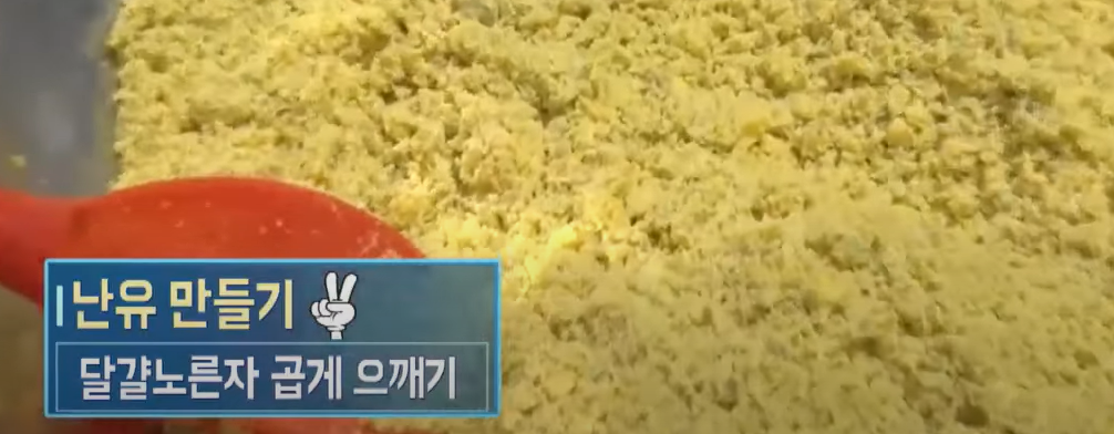 4. 후라이팬에 곱게 만들어진 노른자를 볶아준다.