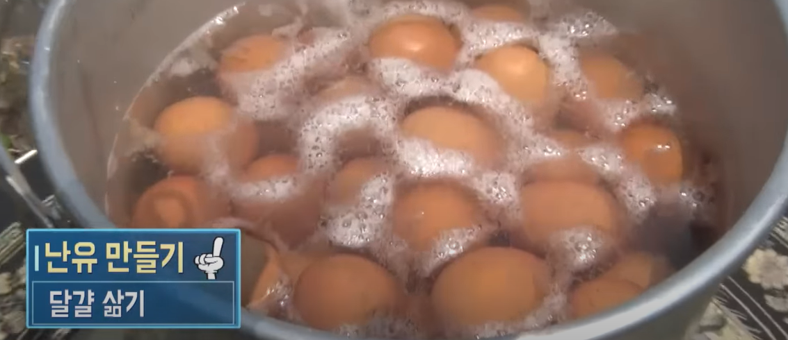 1. 달걀을 삶는다 (달걀 90개 기준 약 300ml 가능)