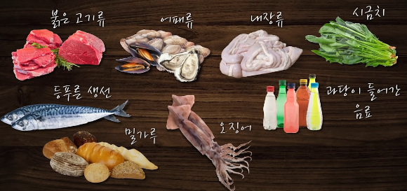 통풍에 좋은 식품. 나쁜식품