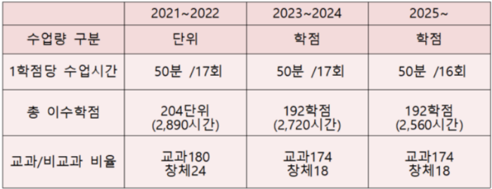 고교학점제의 시행 취지는 한마디로 말해 학생 자신의 진로에 대해서 스스로 고민해 보고 진로를 위해 노력한 결과를 학생부를 통해서 보겠다라는 의미입니다. 2015년 개정 교육과정보다 더 진로에 대해 고민한 정부에 내놓은 해결 방안이라고 볼 수 있습니다. 고교학점제가 시행 되면 수업량 단위에서 학점으로 변경하고 학점당 수업량은 50분씩 17회가 됩니다.