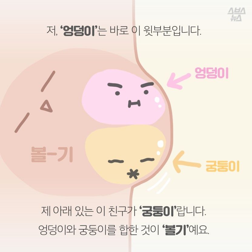 "엉덩이는 뒷쪽, 허리 아래, 넓적다리 윗 좌. 우 쪽으로다가 살이 두둑한 부분을 일컫는 말이고,