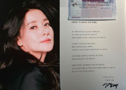 그중 영화배우 이영애 씨는 자신이 직접 쓴 편지와 함께 1억 원을 기분 한 것으로 알려졌습니다. 편지를 통해 자신에 대한 설명도 잊지 않았는데요. 자신 역시 우크라이나에 있는 사람들과 아이들의 고통에 대해 함께 나누고 있다고 말하며 그들을 위로했습니다. 또한 우크라이나와 러시아의 전쟁이 하루 바삐 멈추고 평화가 정착되길 간절히 바라며, 희망과 용기를 잃지 말라는 말을 덧붙였습니다.
