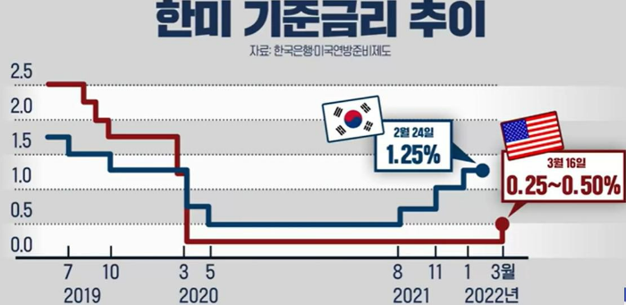 미국은 앞으로 여러 차례 기준 금리 인상을 예고하고 있는 상황으로 현재 0.25에서 0.5%의 기준 금리가 연말 2% 수준으로 이를 방어하고자 한국은행 역시 금리를 더 올릴 것으로 보입니다.