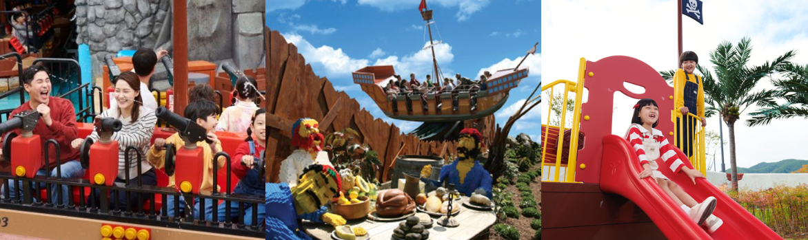'해적의 바다'에서는 물놀이 기구인 스플래쉬 배틀을 즐길 수 있으며, 시원한 그늘막에서 더위도 식히고 시원한 물총 싸움도 즐길 수 있습니다. '캐스트 어웨이 캠프'에서는 레고 해적들과 만날 수도 있습니다.