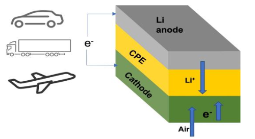 리튬공기전지의 존재는 새로운 개념은 아니었습니다. 기존의 리튬공기전지는 리튬이 액체전해질을 이동해 방전 중 산소와 결합하는 과정 시 과산화리튬(or 초산화 리튬)을 생성하는데, 과산화리튬은 충전할 때 리튬과 산소성분으로 분해되는 화학반응원리를 이용하여 에너지를 저장 또는 방출할 수 있었습니다. 다만 리튬공기전지는 사이클이 극도로 짧다는 단점 때문에 양산화 하기 힘든 개념이었습니다. 그런데 올 초 아르곤(Argonne) 국립연구소는 이러한 수명 단점을 개선하기 위해 고체상태의 세라믹 폴리머 전해질(CPE, Ceramic Polymer Electrolyte)을 사용한 리튬공기전지를 발표했습니다.