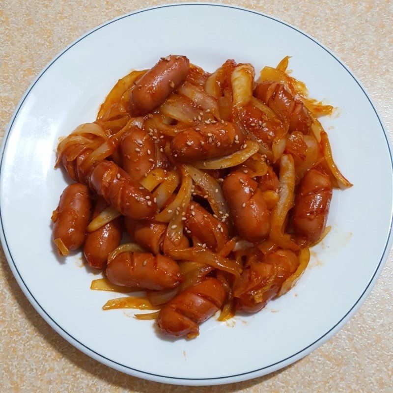 바깥 마당 천막아래 길게 늘어선 탁자가 있었고 그 위에 밥차에서 보듯 밥과 국 여러 반찬들이 세팅되어 있었다. 한식뷔페에서 먹듯이 개인 접시에 밥과 반찬을 먹고 싶은 만큼 올려 먹을 수 있지만 알다시피 잔반은 남김없이 먹어야 했다. 형님은 채식이지만 깊은 허기짐에 뭐라도 많이 먹어야겠다는 생각으로 밥과 반찬을 담았다. 그런데 몇 가지 반찬을 지나치다 눈을 의심하지 않을 수 없었다. 커다란 볼에 비엔나소시지 야채볶음이 한가득 들어 있는 게 아닌가.