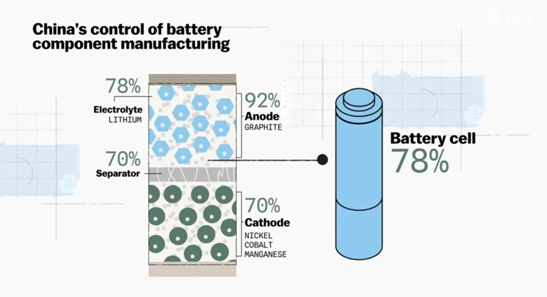 둘째로 중국이 EV 승리자가 될 수 있었던 이유는 바로 풍부한 자원에 있습니다. 리튬이온배터리에 들어가는 양극재(Cathode), 음극재(Anode), 분리막(Separator), 전해액 등 핵심 원재료 중 75%를 중국 내에서 공급할 수 있습니다. 또한 이차전지에 들어가는 원료만 풍부한 것이 아니라 정제(Refine) 능력이 가장 높은 곳이 바로 중국입니다. 아무리 자원이 풍부하다 하더라도 채굴기술이나 정제기술이 부족하다면 지금의 중국은 없었을 것입니다. 콩고 같이 아무리 자원이 풍부해도 결국은 이를 정제하여 제품에 사용할 수 있는 능력이 없다면 풍부한 자원도 그저 그림 속의 떡일 뿐입니다. 중국은 자원의 중요성을 매우 잘 알고 있습니다. 그래서 자신들이 가진 자원뿐만 아니라 아프리카와 남미, 동남아시아에 걸쳐 광산이란 광산에 막대한 자금력을 동원하여 선점해두고 있는 것입니다.