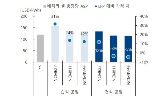 이 방법을 통해서 3원계 조성의 배터리가격을 중국이 주도하는 LFP 수준으로 가격을 낮출 수 있습니다. 3원계 조성 배터리의 에너지 밀도특성을 유지하면서도 보다 저렴하게 공급할 수 있는 유일한 대안이 될 것으로 기대하고 있습니다.