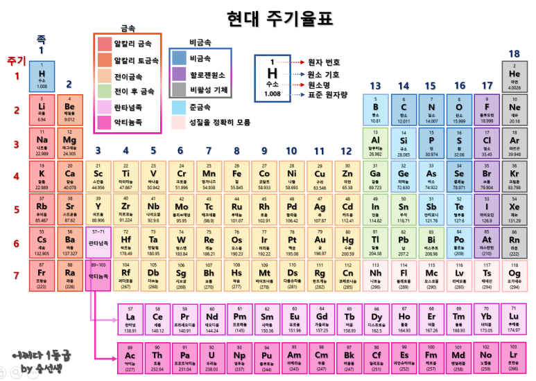 간단한 화학지식을 한번 소환하겠습니다. 바로 원소주기율표입니다.