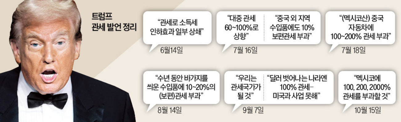 트럼프의 대표 공약 중 하나는 관세입니다. 중국뿐 아니라 우리나라 같은 동맹국에도 10에서 20%의 관세를 매기겠다고 공언하고 있습니다. 그동안의 행보를 살펴보면 허언으로 끝날 것 같지 않아 더욱 불편한 마음입니다.