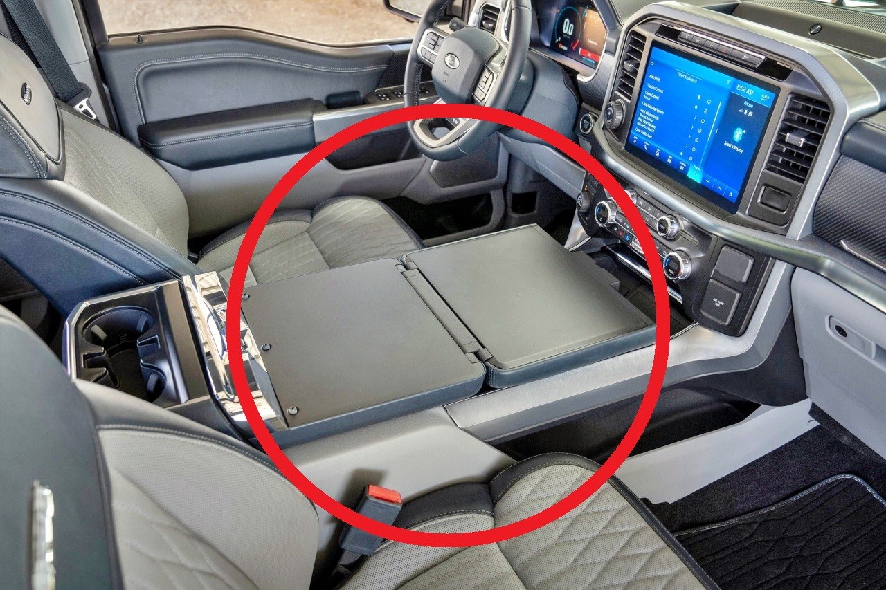 - 포드 F-150: 이 모델에는 센터 콘솔을 평평하게 펼쳐 노트북 작업이 가능하도록 설계된 테이블이 포함됩니다.