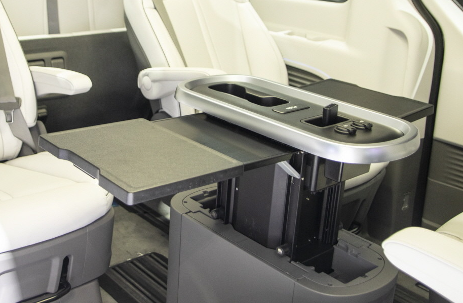 - 기아 카니발 하이리무진: 2열 좌석 사이에 접이식 테이블이 장착되어 있으며, 회의나 식사 시 유용하게 사용할 수 있습니다.