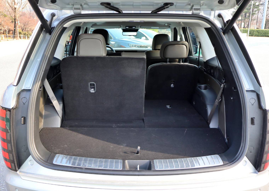 팰리세이드는 기본 트렁크 용량 509L, 2열과 3열을 접으면 최대 2,447L까지 확장됩니다. 2열 틸팅 워크인 시트로 적재 편의성이 높아 캠핑 장비를 쉽게 싣고 내릴 수 있습니다.