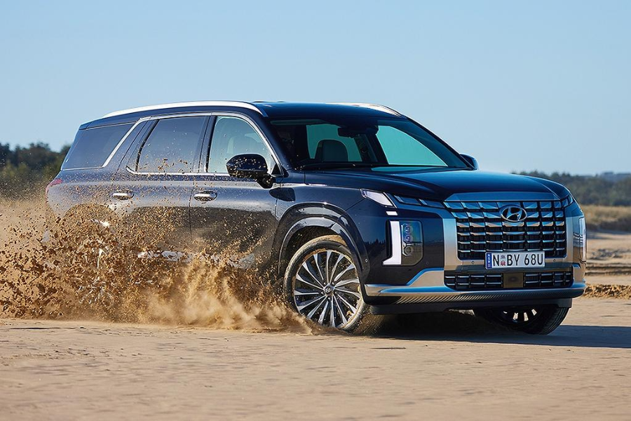 팰리세이드는 최대 2,268kg의 견인 능력을 제공하며, HTRAC AWD 시스템으로 안정적인 힘을 발휘합니다. 트레일러 히치가 옵션으로 제공되며, 캘리그래피 트림에서는 프리뷰 전자제어 서스펜션으로 무거운 짐을 실었을 때도 승차감이 유지됩니다.