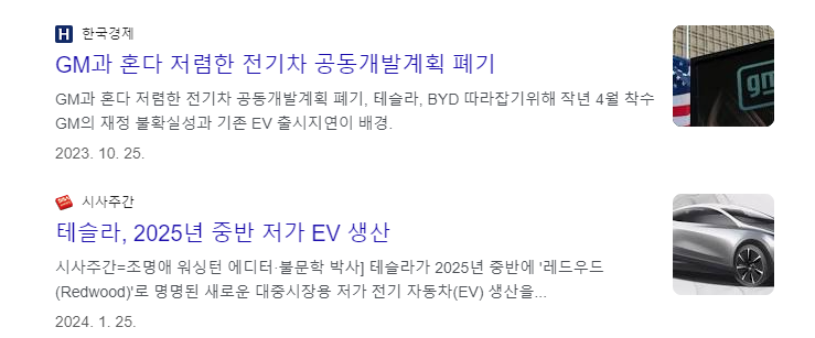 과거 테슬라는 25,000달러 전기차를 통해 EV의 점유율을 높이고, 확보된 차량들을 통해 로보택시로의 전환을 계획했습니다. 하지만 생각보다 중국 내 전기차의 가격경쟁력과 로보택시 기술발전속도가 빠르다고 판단되어 결국 저가형 차량 개발을 미루고 로보택시에 좀 더 집중하겠다고 결정했습니다.