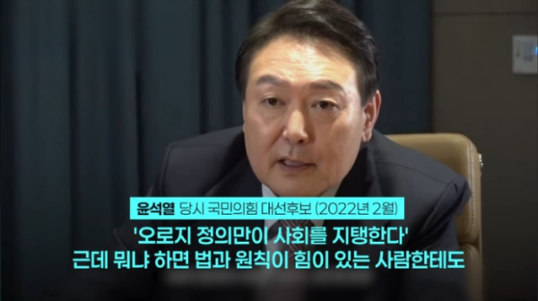 국민이 원하는 것은 단순한 구호가 아닙니다. 과거의 그가 현재의 그에게 마치 미래를 봤다는 듯이 얘기하고 있습니다. 이제 스스로의 맹세를 어긴 자신에게 법에 엄정함을 느낄 수 있는 시간이 되길 바랍니다.